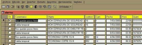 Tabla dinámica de alertas de stock mínimo.